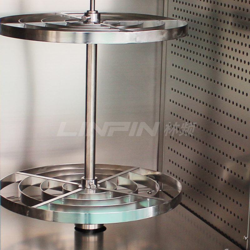 • 試樣轉盤:兩層不銹鋼轉架(可根據客戶要求定制隔板樣品架)
